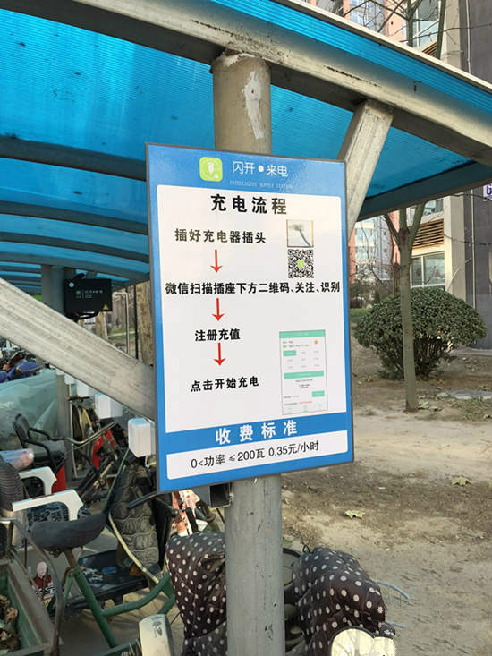 “过去电动车充电很不方便,都是把电瓶弄到楼上充电,还有的人从家里甩出接线板充电,特别不安全。”另外一位居民说。电动自行车充电桩的使用,使小区的安全系数大大增加。解决了高楼层的居民充电难的问题,这样再也不用担心阴雨天气没法充电和充电线裸露造成安全隐患了。 ”
