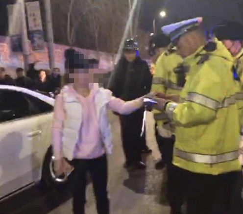 当晚20点30分左右,夜幕下城区常甫路上车辆穿梭不停,一辆未挂牌照的白色奥迪轿车由南向北开到某小区附近,突然急转弯驶入东侧小路口。这辆轿车有问题,马上拦截!路口几名执勤交警迅速前后布控,很快将白色奥迪轿车拦停在非机动车道边,上前敬礼请司机下车接受检查。面对车外的交警,女司机坐在车里一言不发,而且锁紧门窗拿出手机拨打电话。