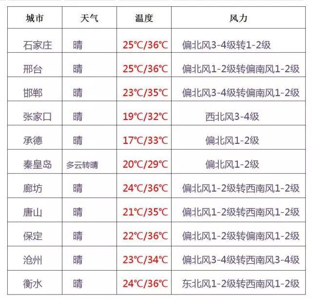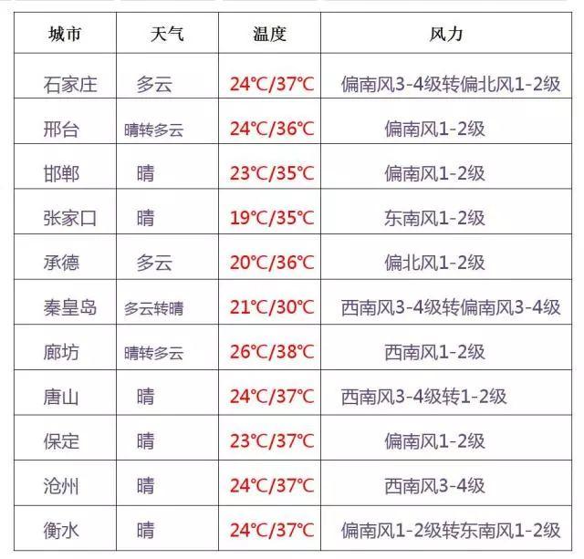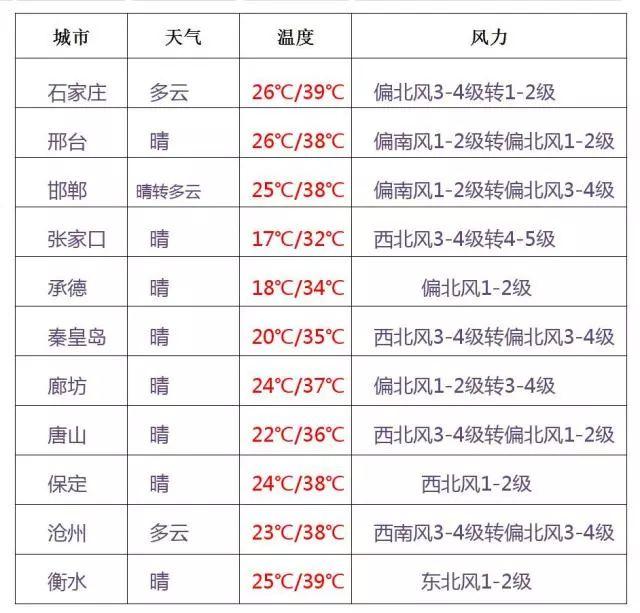 河北省气象台2018年06月27日11时发布高温红色预警信号!预计今天白天,保定、廊坊及以南大部分地区最高气温可达37-39℃,其中石家庄、保定和廊坊的部分县市可达40℃以上,请防范。