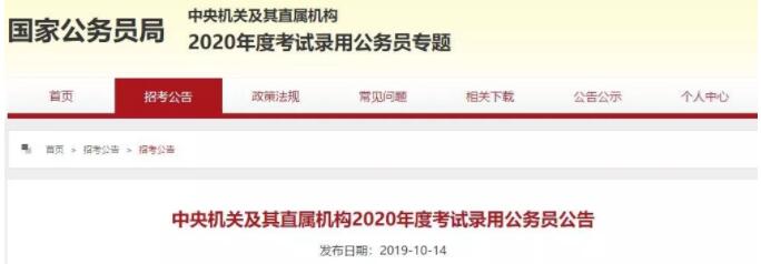 各招录机关的招考人数、具体职位、考试类别、资格条件等详见《中央机关及其直属机构2020年度考试录用公务员招考简章》(以下简称《招考简章》),报考者在2019年10月14日后可以通过中央机关及其直属机构2020年度考试录用公务员专题网站(以下简称考录专题网站,http://bm.scs.gov.cn/kl2020)查阅。(点击本文文末“阅读原文”前往专题网站,点击《招考简章》第一时间进行职位查询)