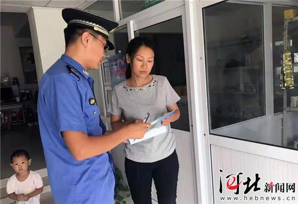 图为廊坊市城管行政执法局工作人员向临街商户详细宣传新“门前三包”内容。