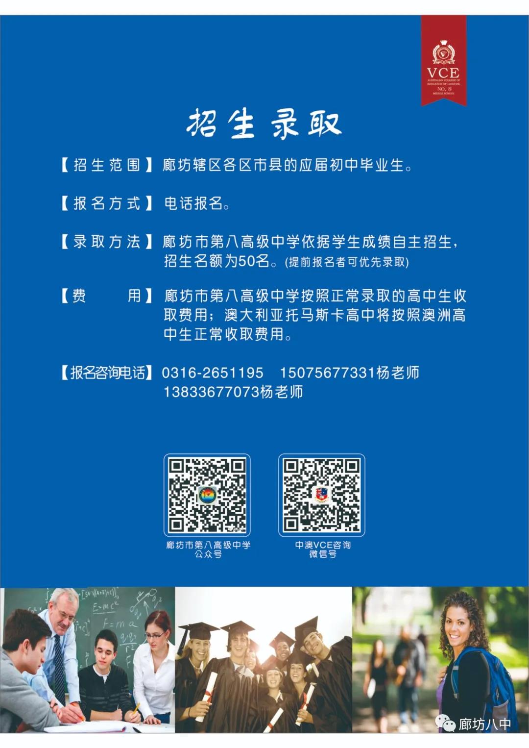 廊坊市第八高级中学首届澳大利亚VCE课程实验班招生简章!