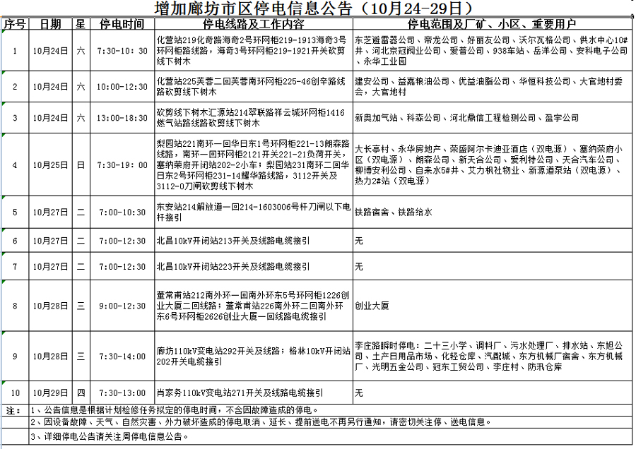 摘要:增加廊坊市区停电信息公告(10月24-2 增加廊坊市区停电信息公告