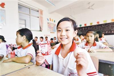 9月2日10时,在文安县德归镇西柴沟中心校教室,45名小学生从领餐员手里接过鸡蛋和学生奶,脸上露出幸福的笑容。这是文安县推行农村小学生营养改善计划的第一天,全县157所小学(含民办学校)的5万名农村小学生当日起开始领取营养餐。营养餐采取课间加餐模式,每名学生可领取一盒牛奶、一个鸡蛋。